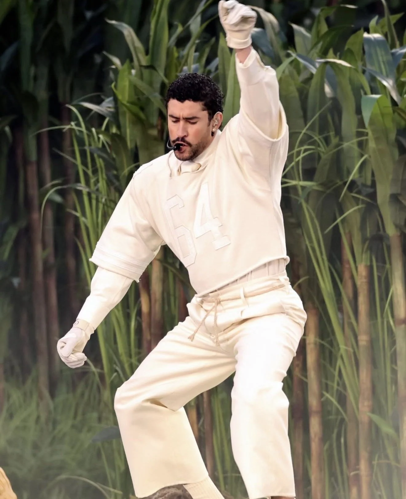 El show arrancó con “Tití me preguntó”, mientras Benito aparecía vestido con un jersey color crema con su apellido, Ocasio, y el número 64. Caminando por el campo y marcando desde el primer segundo el tono del espectáculo: esto no iba a ser solo un concierto, iba a ser una celebración de identidad puertorriqueña.